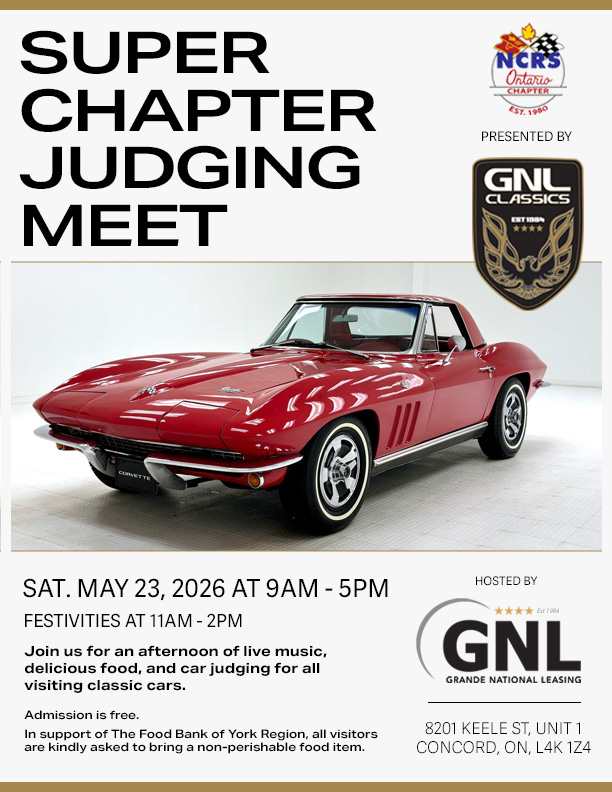 GNL Classics and NCRS Ontario unite to present the 2026 Super Chapter Judging Meet — hosted by GNL on May 23, 2026!